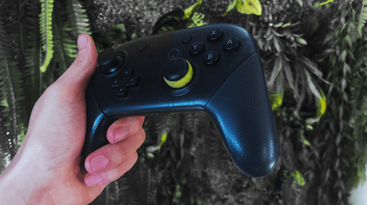 Para colocar, estique a borracha com cuidado e encaixe no analógico do controle.